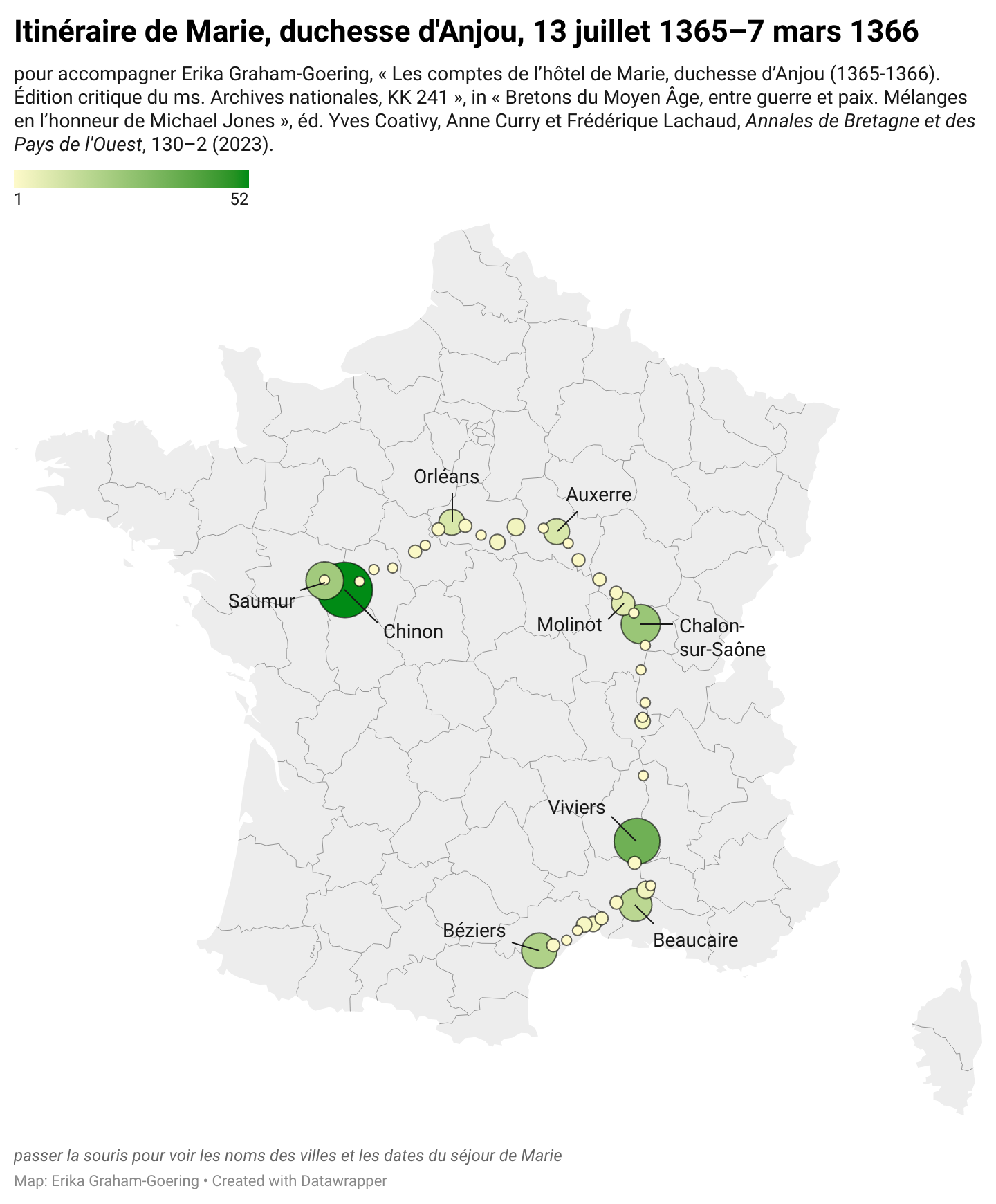 Title: Les comptes de l'hôtel de Marie, duchesse d'Anjou (1365-1366). Édition critique du ms. Archives nationales, KK 241 [map] Contributors: Creator: Graham-Goering, Erika (Durham University, UK)